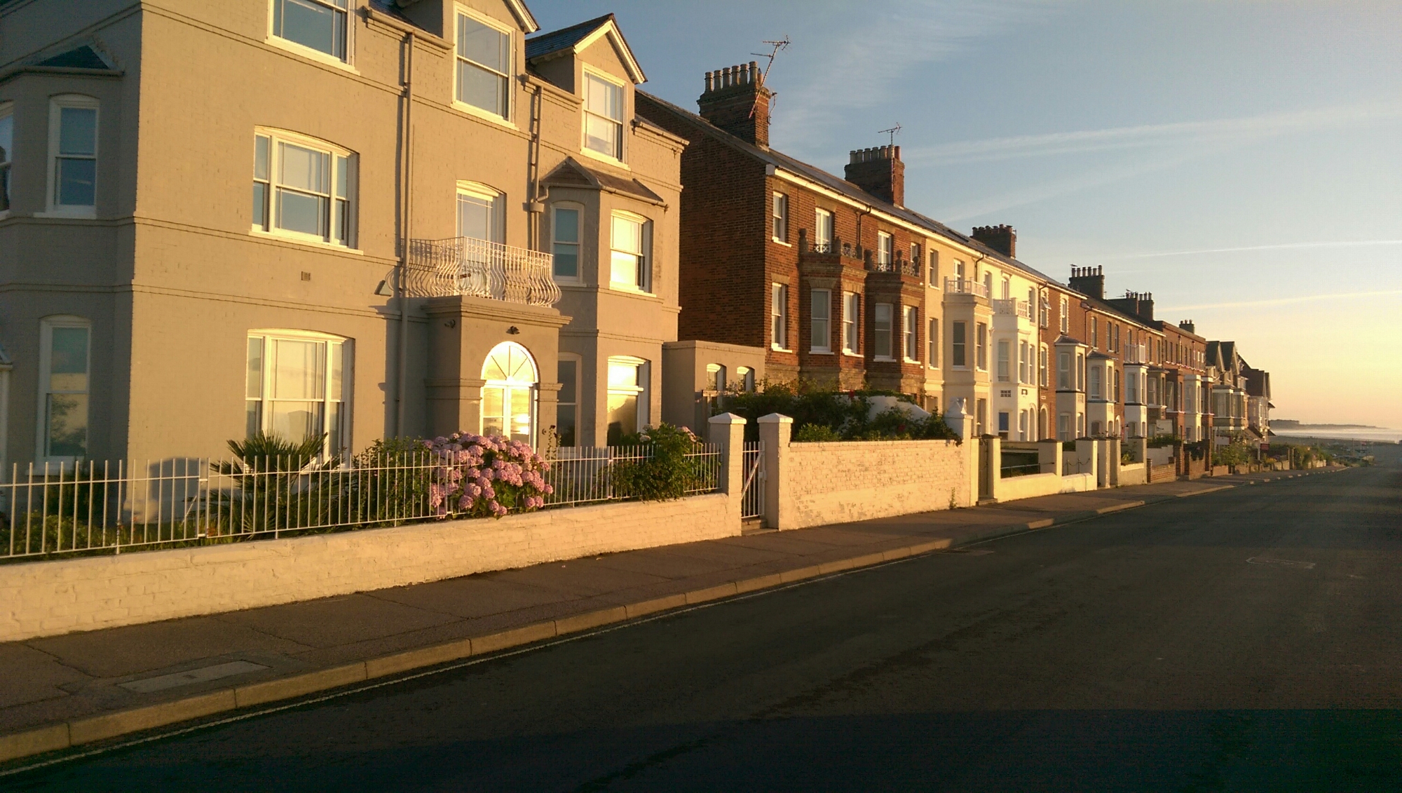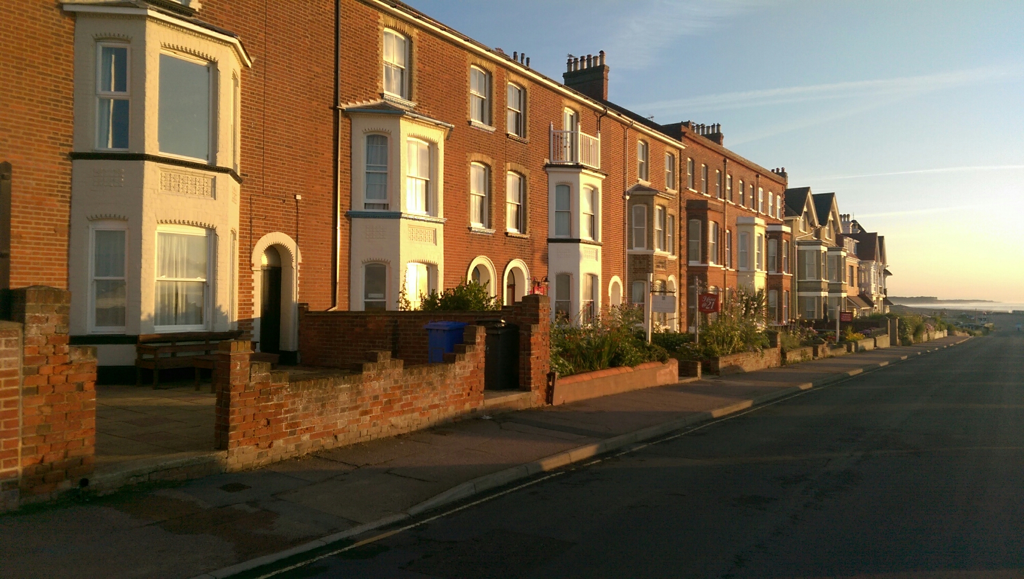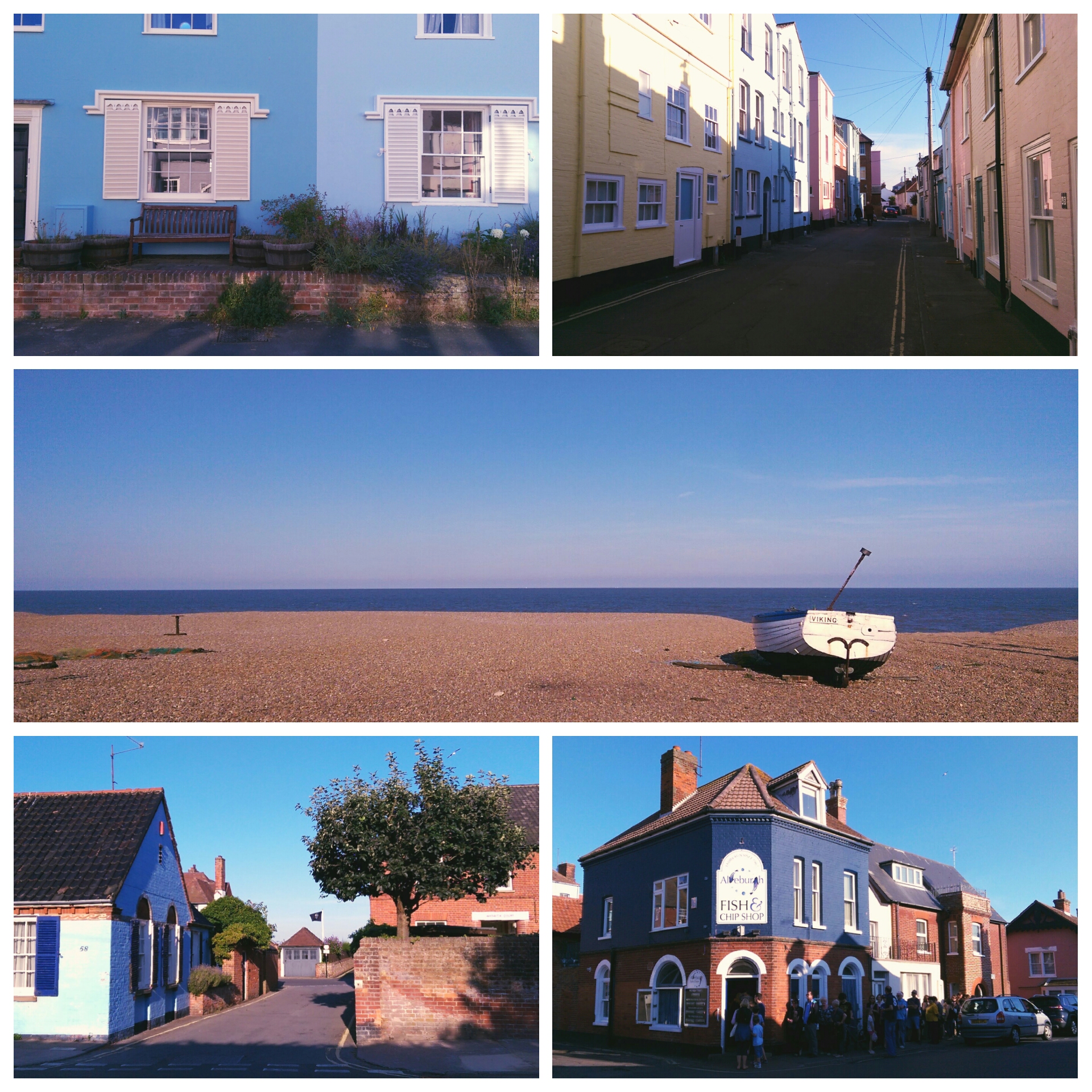 Am späten Nachmittag fahren wir nach Aldeburgh, unserer letzten B&B Station. Übrigens spricht mal Aldeburgh wie „Oldbra“. Logisch, oder. Die Betonung liegt dabei auf der ersten Silbe, damit es nicht wie alter BH klingt. Aldeburgh ist eine bunte kleine Stadt direkt am Meer mit viel Fischerei aber wenig Badegästen, da der Strand nur aus Steinen besteht. Leider muss ich mir das kleine Örtchen allein ansehen, da Katja ein Sonnenstich ans Bett fesselt. Die Sonne hat es heute vielleicht doch ein bisschen zu gut gemeint. Kurz nach neun, komme ich nach über einer halben Stunde Wartezeit endlich zu meinem Abendessen. Fish and Chips natürlich, vom beliebtesten Imbiss des Ortes. Ich trage meine fettige Tüte zu einer Bank am Strand und beende den Tag, wie ich ihn begonnen habe, mit viel Genuss und viel Meer.