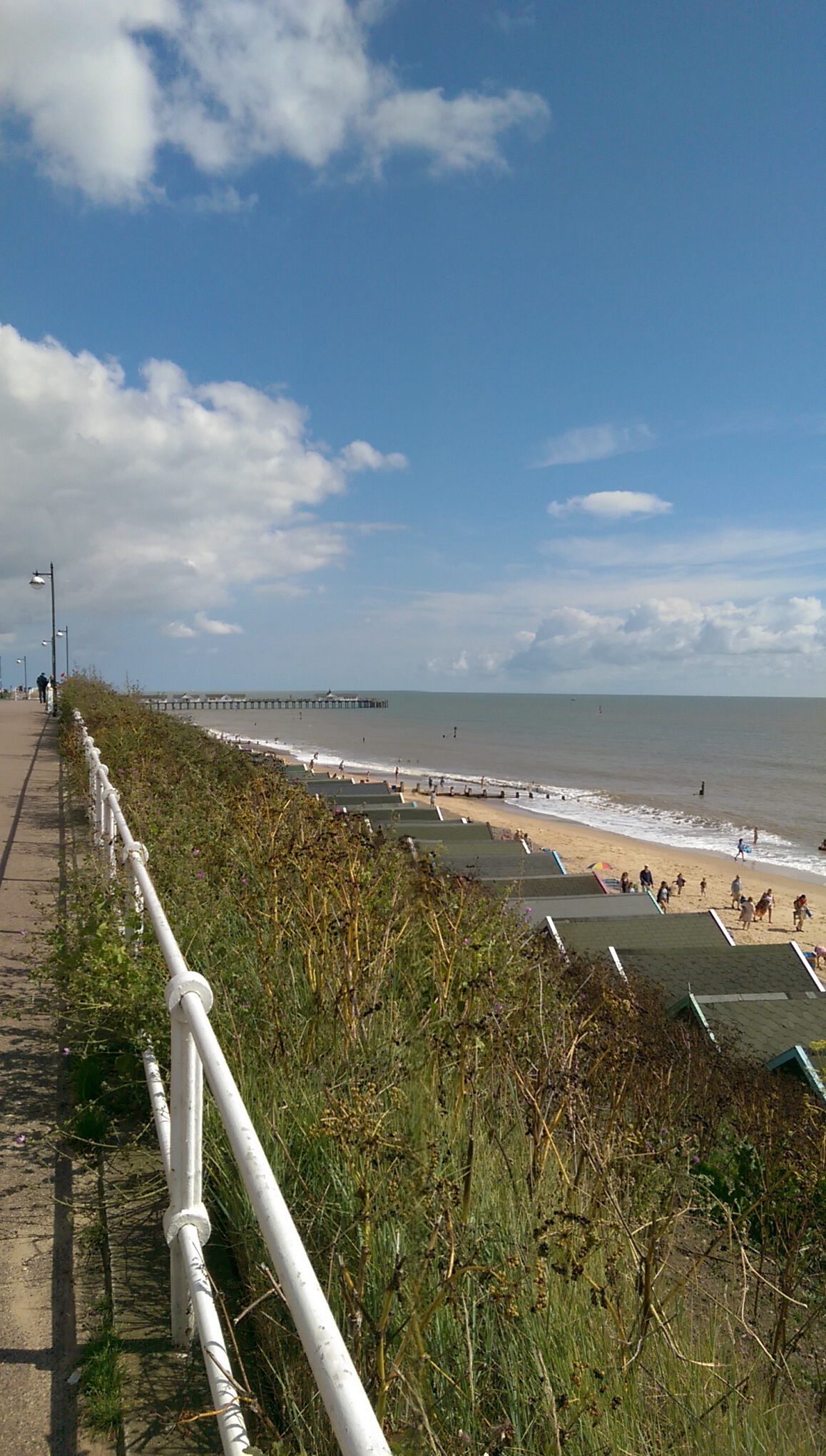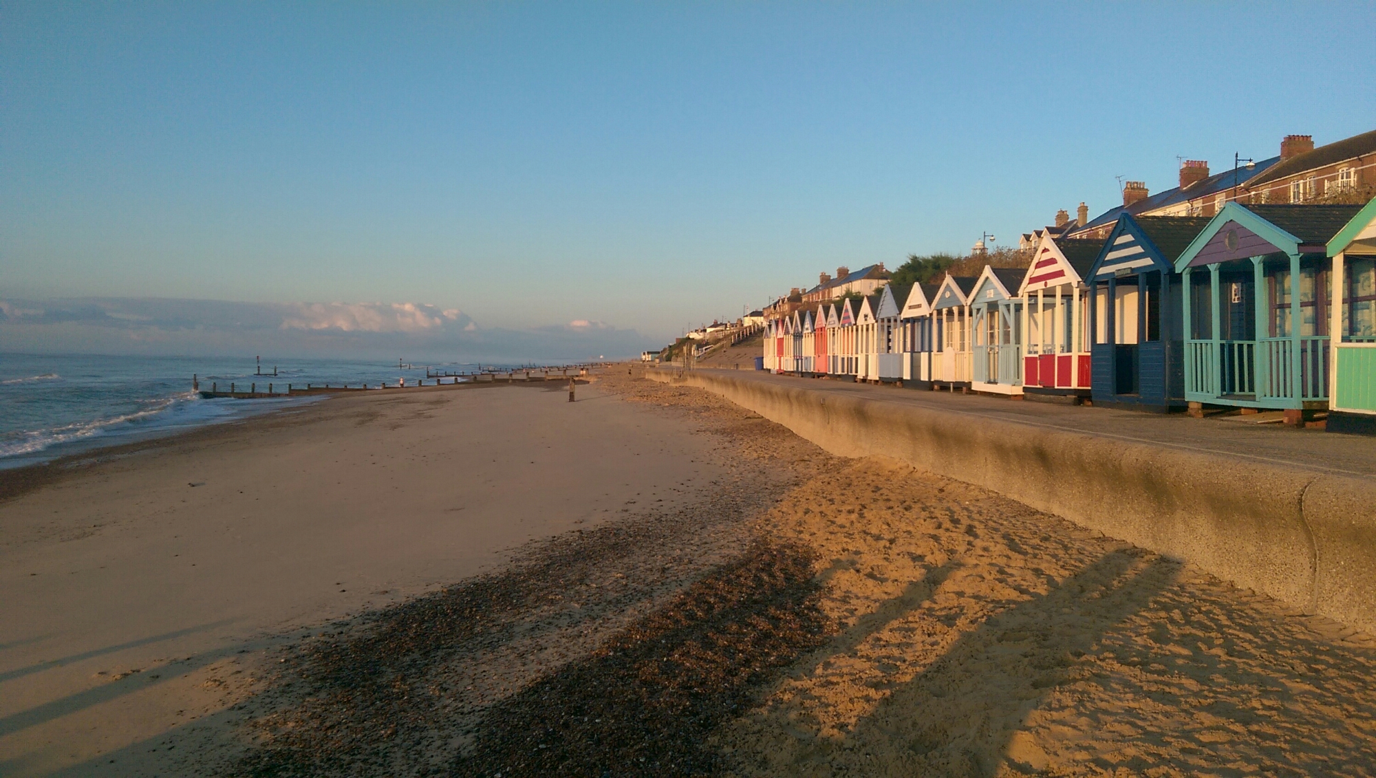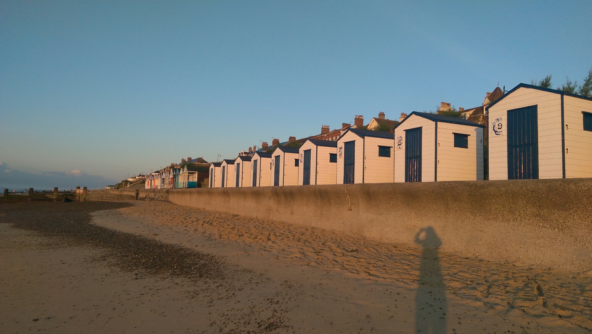 Am späten Nachmittag fahren wir nach Aldeburgh, unserer letzten B&B Station. Übrigens spricht mal Aldeburgh wie „Oldbra“. Logisch, oder. Die Betonung liegt dabei auf der ersten Silbe, damit es nicht wie alter BH klingt. Aldeburgh ist eine bunte kleine Stadt direkt am Meer mit viel Fischerei aber wenig Badegästen, da der Strand nur aus Steinen besteht. Leider muss ich mir das kleine Örtchen allein ansehen, da Katja ein Sonnenstich ans Bett fesselt. Die Sonne hat es heute vielleicht doch ein bisschen zu gut gemeint. Kurz nach neun, komme ich nach über einer halben Stunde Wartezeit endlich zu meinem Abendessen. Fish and Chips natürlich, vom beliebtesten Imbiss des Ortes. Ich trage meine fettige Tüte zu einer Bank am Strand und beende den Tag, wie ich ihn begonnen habe, mit viel Genuss und viel Meer.