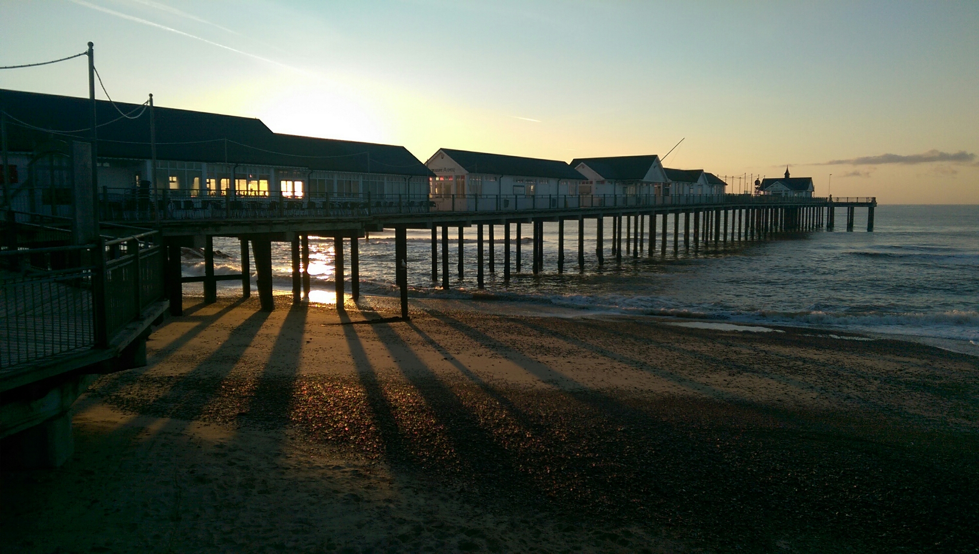 Der Tag beginnt früh. Sehr früh. Um 5:20 Uhr, um genau zu sein. Das Gute daran, dass es in diesem Urlaub mit dem Ausschlafen nicht klappt, ist dieser ordentlich geführte Blog und der heutige Morgen. Ich wache fast pünktlich zum Sonnenaufgang auf. Das Northcliffe B&B ist direkt am Strand und ein kurzer Blick aus dem Fenster sagt mir, ich muss unbedingt raus. Die Sonne hat sich gerade über den Pier gekämpft und gibt alles. Der Strand leuchtet golden. Jetzt muss es schnell gehen, Jacke an, Turnschuhe an, Schlüssel und Handy gegriffen. Die Haare sind ein Knäuel und die Schlafanzughose eindeutig viel zu kurz. Egal, ist ja niemand da. Es ist wunderschön. Das Meer rauscht und funkelt. Das Pier und ich tragen einen Wettbewerb um den längsten Schatten aus. Ich laufe immer wieder auf und ab, das Handy ist schon ganz geschafft von der Fotoknipserei. Beim ersten Selfie merke ich, dass ich die Brille vergessen habe. Macht nix. Dieser Anblick würde mich auch mit 10 Dioptrin von den Socken hauen. Eine halbe Stunde lang staune ich, genieße ich und bin so glücklich wie es nur geht. Dann hüpfe ich zurück in meinem zu kurzen Pyjama und ohne Brille, leg mich ins Bett und schaue mir die Fotos an. Das ist mal ein ordentlicher Start in den Tag.