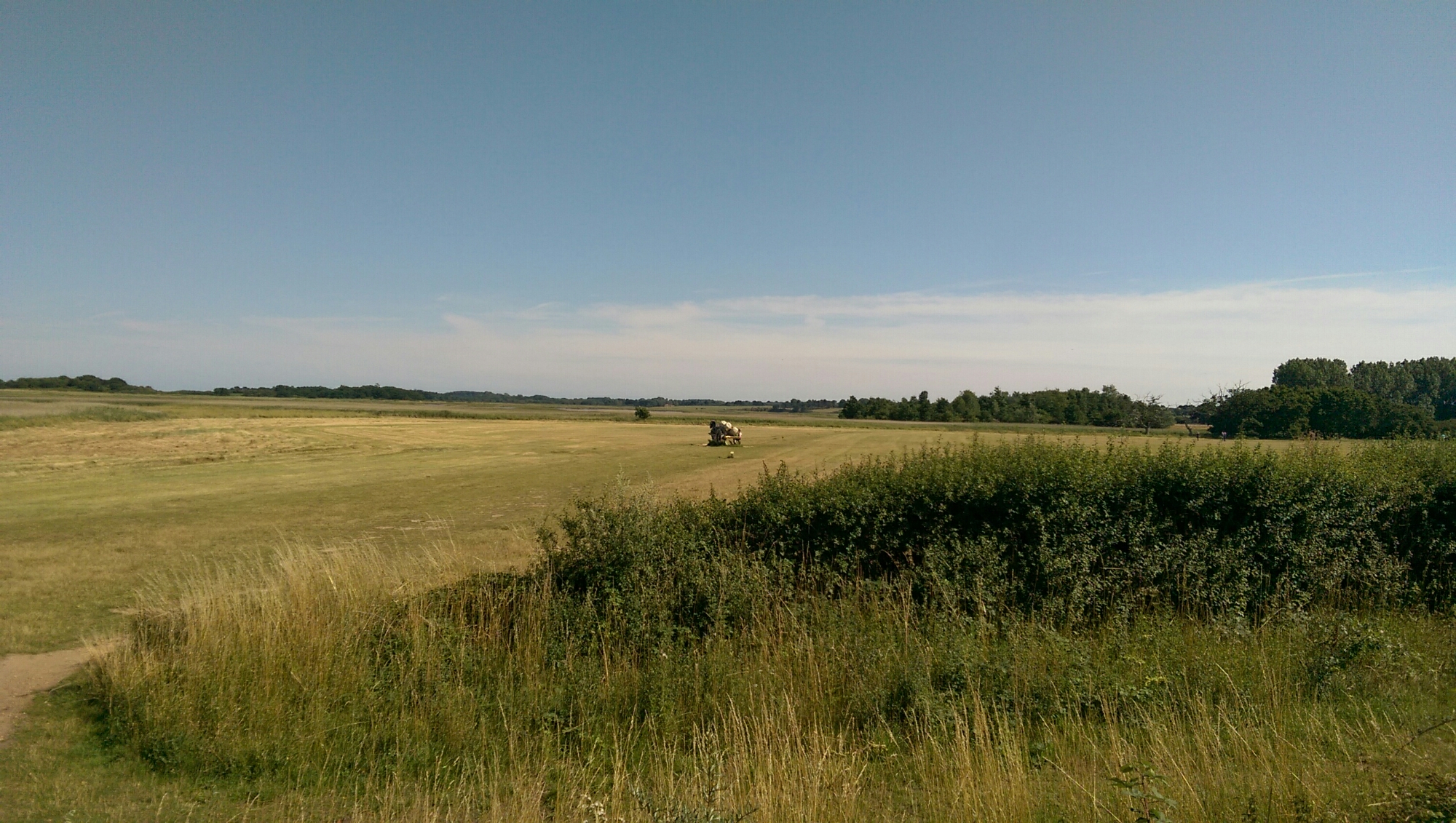 Wir fahren weiter Richtung Snape Maltings – auch ein Tipp unseres B&B Hosts, aber ein sehr viel besserer. Snape Maltings ist eine alte Mälzerei mit dem größten Malting House Englands. Inzwischen ist das riesige Gelände der Kunst gewidmet. Eine der bekanntesten Music Halls des Landes befindet sich direkt im alten Malting House. Sie wurde in den 60ern von dem berühmten englischen Komponisten Benjamin Britten für das jährliche Aldeburgh Festival ausgesucht und umgebaut. Der Saal ist einzigartig. Ein riesiger Raum nur umhüllt von Backsteinen und ein paar Holzstreben. Rings um das Malting House haben sich diverse Künstler angesiedelt. Es gibt Ausstellungen, Kurse und natürlich Shops, Cafés und Restaurants. Innerhalb der alten industriellen Substanz ist alles modern und stilvoll. Ein schöner Ort umgeben von einer schönen Landschaft. Die wir bei einem Spaziergang, stilecht mit einem Tea on the go erkunden. Das Wetter ist zu schön für zu viel Kultur.